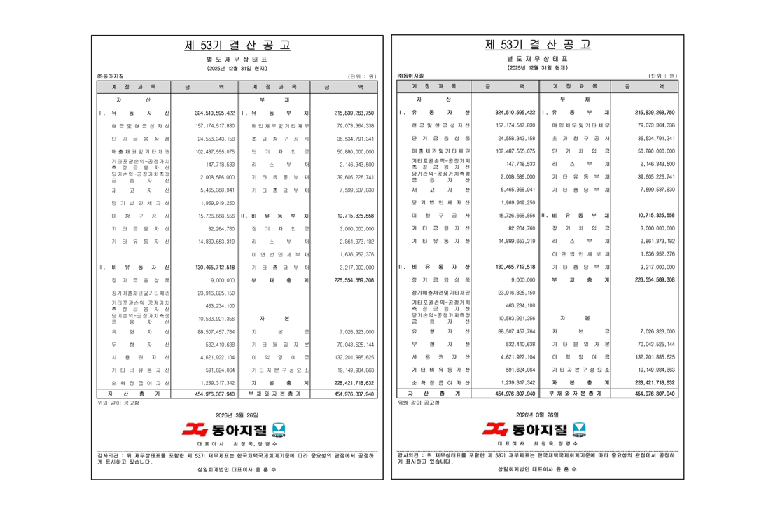 News & IR Room 함께 만들어가는 이야기 NEWS 2025년 결산공고(제53기) 2026.03.27 NEWS 2025 부울경 토목컨벤션 참여 2025.08.29 NEWS 2025 시공능력평가, 당사 토목건축 부분 73위 2025.08.01 NEWS 동아지질, TBM독자모델 2호기 제작완료 2025.07.10 NEWS 동아지질, 2025년 안전관리자 역량강화 교육 실시 2025.06.27 NEWS 부산시, '알쓸지잡 시즌 1' 기술 강좌에서 'DCM 공법의 최근 동향' 발표 2025.06.12